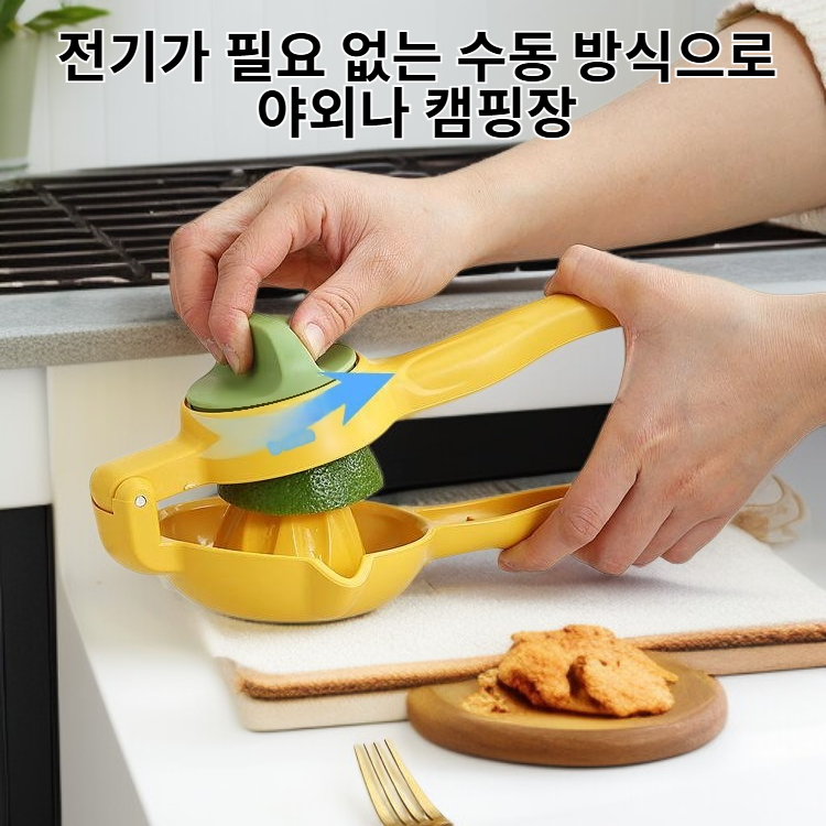 ● 다기능 수동 착즙기는 레몬, 오렌지 등 다양한 과일을 쉽고 빠르게 착즙할 수 있어 건강한 주스를 집에서 간편하게 즐길 수 있습니다. ● 손잡이 디자인과 인체공학적 구조로 힘을 적게 들이고도 많은 양의 과즙을 추출할 수 있어 누구나 편리하게 사용할 수 있습니다. ● 세척이 간편한 분리형 구조로 위생적으로 관리할 수 있으며, 주방 어디에나 어울리는 심플하고 세련된 디자인을 자랑합니다. ● 전기가 필요 없는 수동 방식으로 야외나 캠핑장, 여행지 등 어디서나 신선한 주스를 만들어 드실 수 있습니다.