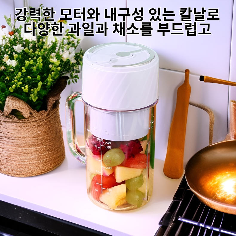 ● 언제 어디서나 간편하게 사용할 수 있는 무선 휴대용 주서기로, 신선한 과일과 야채 주스를 빠르게 즐길 수 있습니다. ● 간편한 세척과 휴대성을 자랑하여 바쁜 일상 속에서도 영양 가득한 주스를 손쉽게 섭취할 수 있습니다. ● 강력한 모터와 내구성 있는 칼날로 다양한 과일과 채소를 부드럽고 균일하게 착즙하여 건강한 라이프스타일을 지원합니다. ● USB 충전식 설계로 야외, 사무실, 여행 등 어디서든 자유롭게 사용 가능하며, 한 번 충전으로 여러 번 사용이 가능합니다. ● 친환경 소재와 안전한 이중 잠금장치로 가족 모두 안심하고 사용할 수 있어 선물용으로도 탁월한 선택입니다.